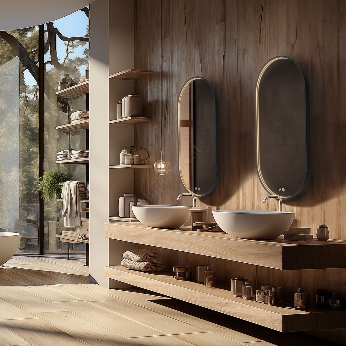 • Lo specchio dispone inoltre di una funzione memoria che ricorda l'ultima impostazione di illuminazione e la temperatura di colore.
