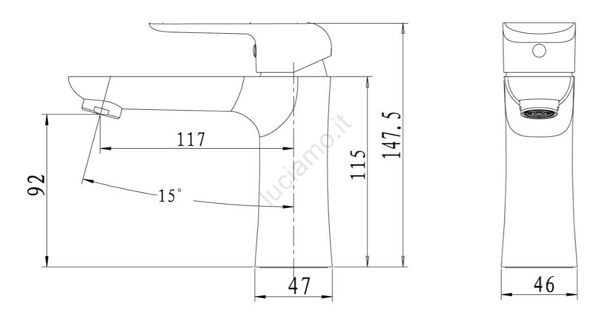 • Meccanismo di comando: cartuccia ceramica da 35 mm.