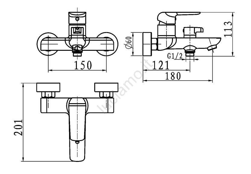 • Questo miscelatore monocomando per vasca aggiunge un tocco di eleganza a qualsiasi bagno.