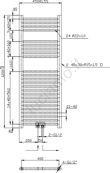 Novaservis - Scaldasalviette a scaletta per bagno 490W/230V 120x45 cm, nero, dritto