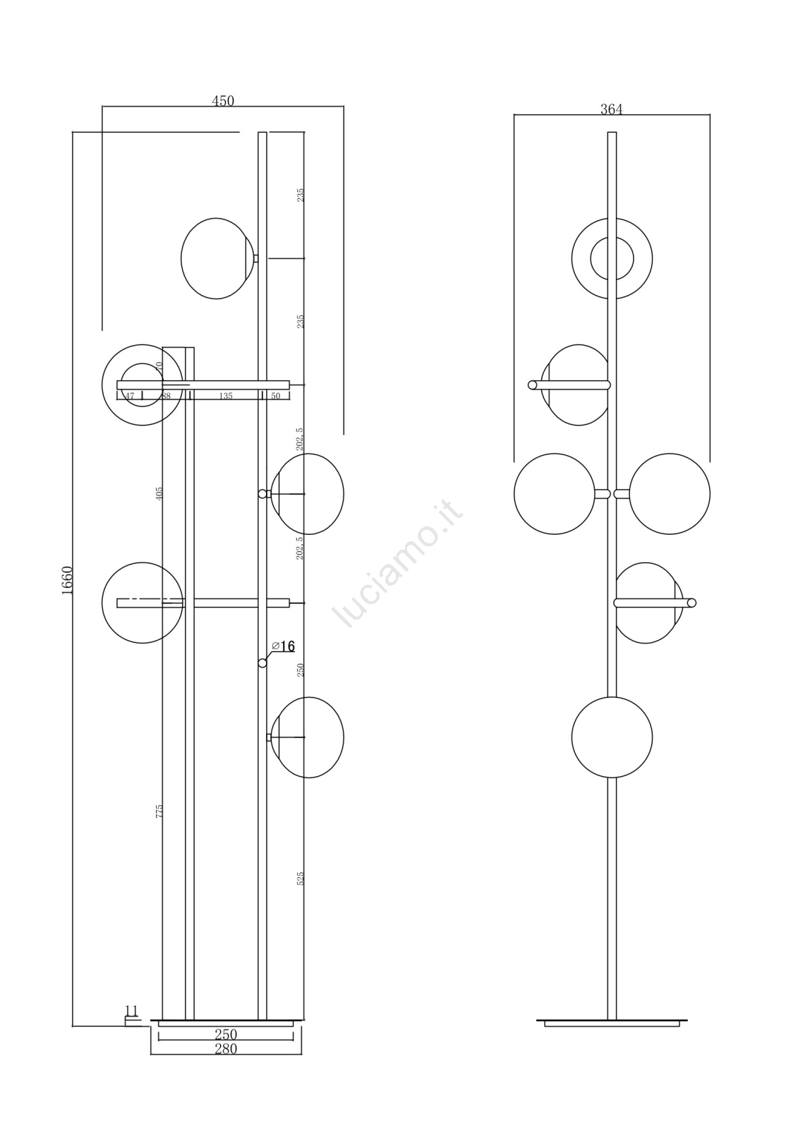 • Ondaluce - Lampada da terra JEWEL 6xE14/10W/230V 166 cm nero/nero fumé