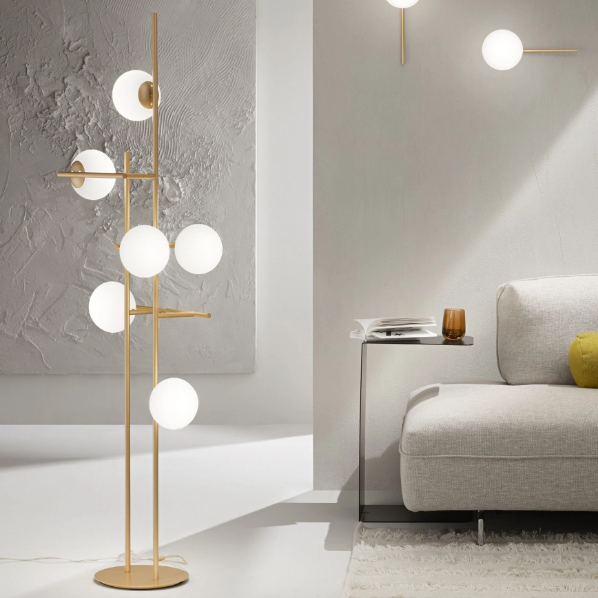 • Ondaluce - Lampada da terra JEWEL 6xE14/10W/230V 166 cm oro/bianco