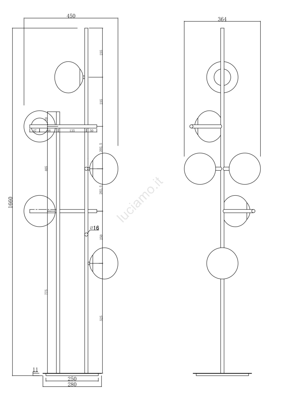 • Ondaluce - Lampada da terra JEWEL 6xE14/10W/230V nero fumé