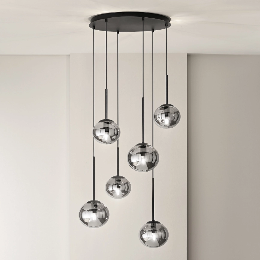 • Ondaluce - Lampadario a sospensione con cavo JEWEL 6xE14/10W/230V Ø 55 cm nero fumé