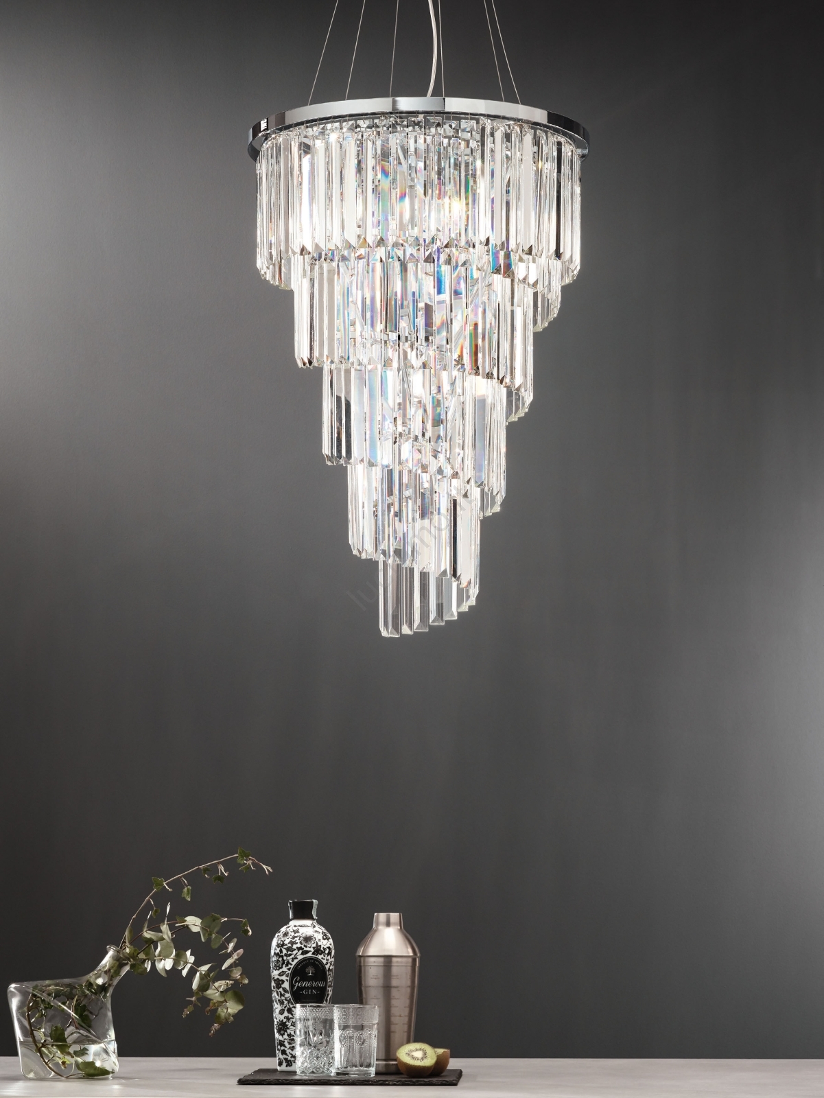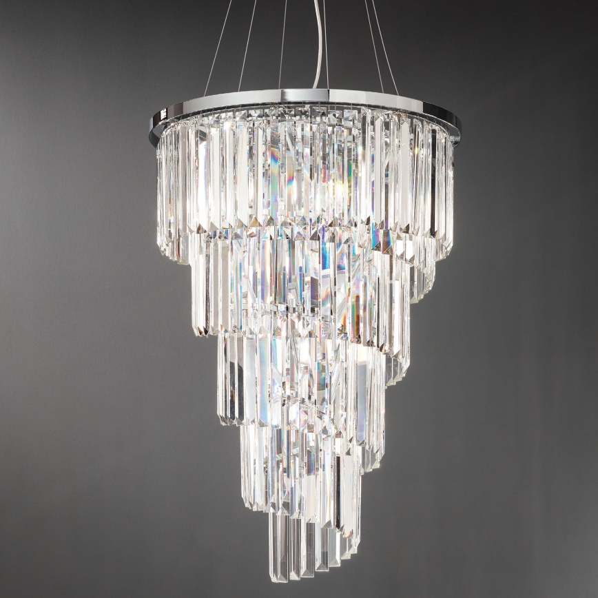 Ondaluce - Lampadario in cristallo sospeso con cavo ALEXANDER 10xE14/10W/230V Ø 50 cm cromo lucido/cristalli trasparenti