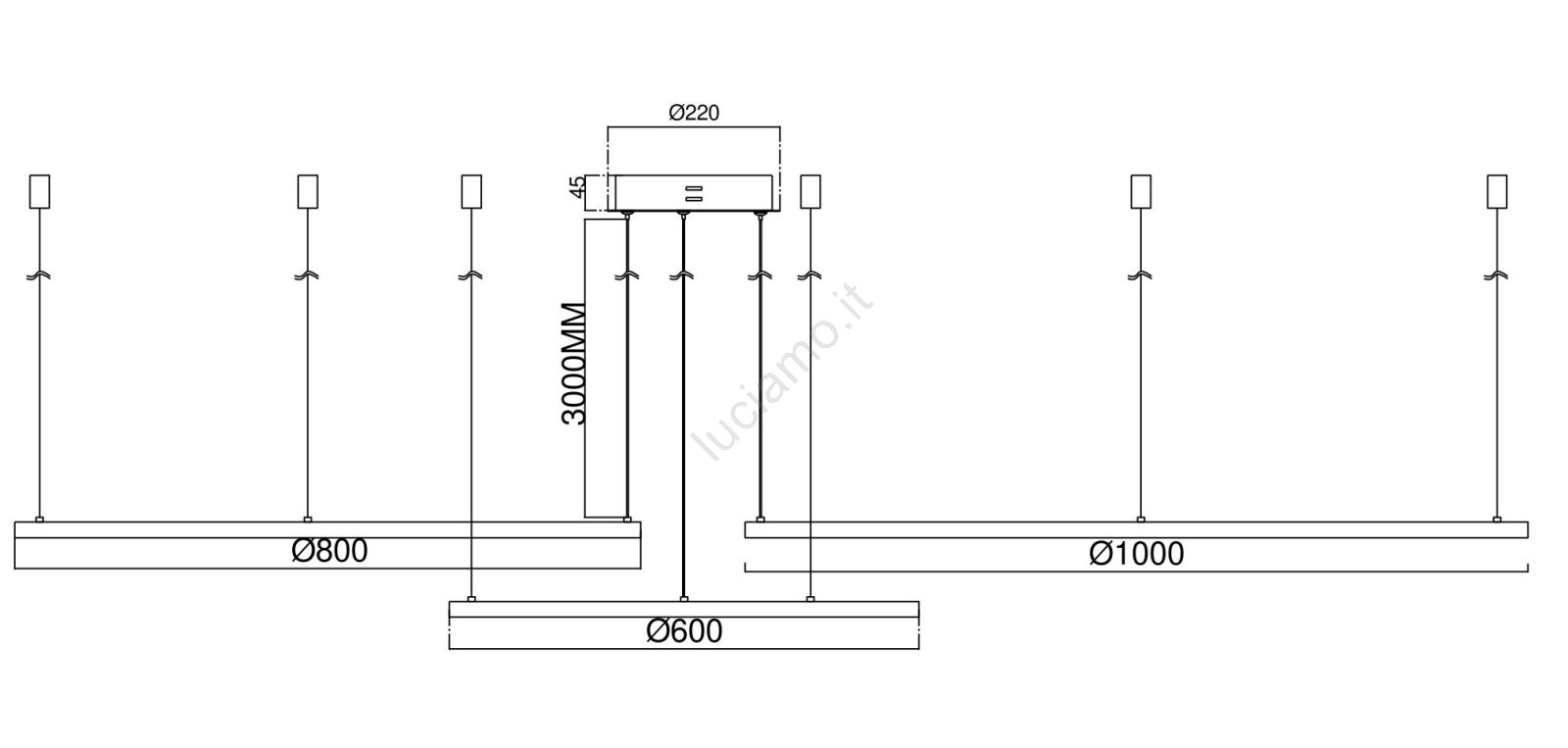 Ondaluce - Lampadario LED dimmerabile a cavo SOEL LED/28W/230V + LED/38W Ø 80/60 cm oro