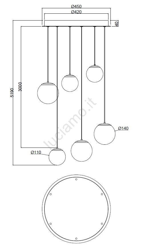 Ondaluce - Lampadario LED sospeso su cavo SANTOS LED/48W/230V Ø 45 cm oro/bianco