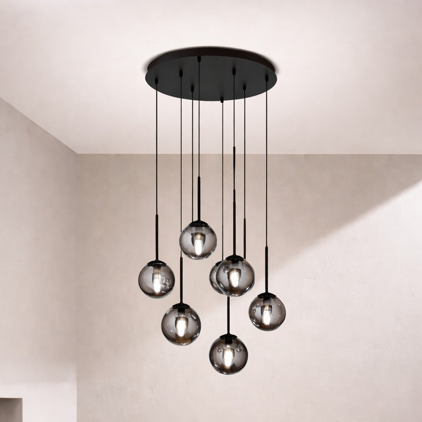 Ondaluce - Lampadario sospeso a cavo JEWEL 8xE14/10W/230V Ø 70 cm nero fumé caratterizza un design gradevole e funzionale. Per la lampada è adatta una lampadina con attacco E14. Qui puoi acquistare altre lampadine a prezzi vantaggiosi. Avrai un'aggiunta interessante alla tua casa.