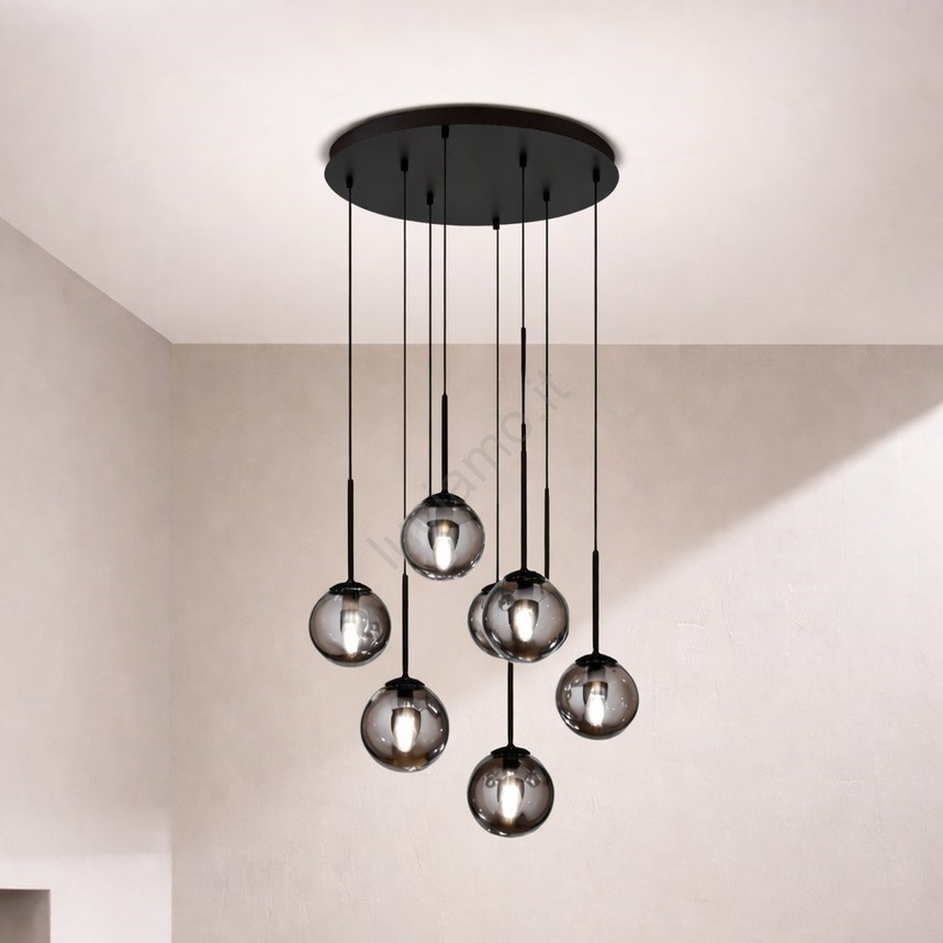• Ondaluce - Lampadario sospeso a cavo JEWEL 8xE14/10W/230V Ø 70 cm nero fumé