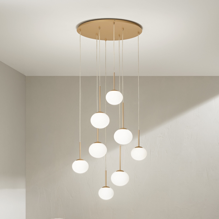 Ondaluce - Lampadario sospeso con cavo JEWEL 8xE14/10W/230V Ø 70 cm oro/bianco