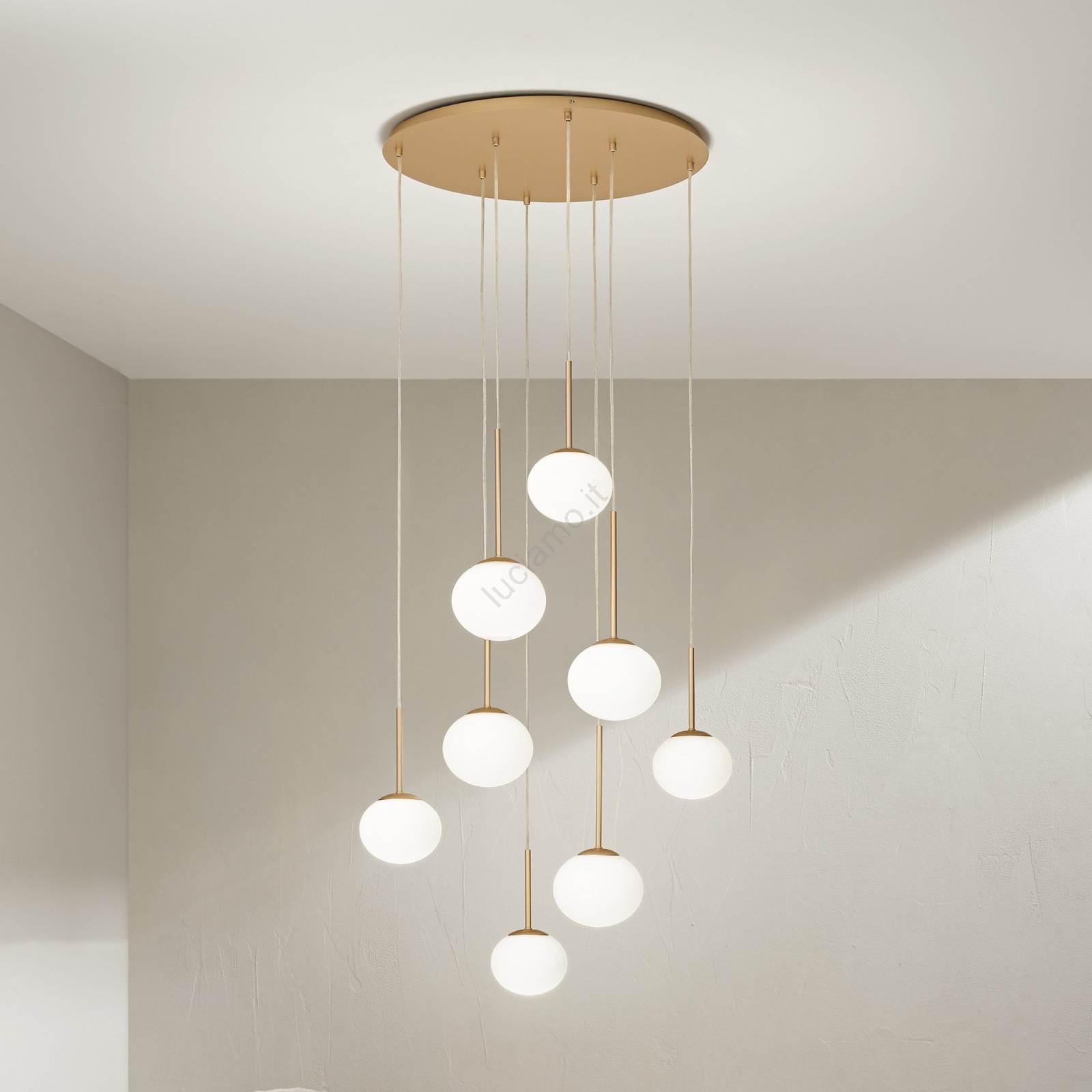 • Ondaluce - Lampadario sospeso con cavo JEWEL 8xE14/10W/230V Ø 70 cm oro/bianco