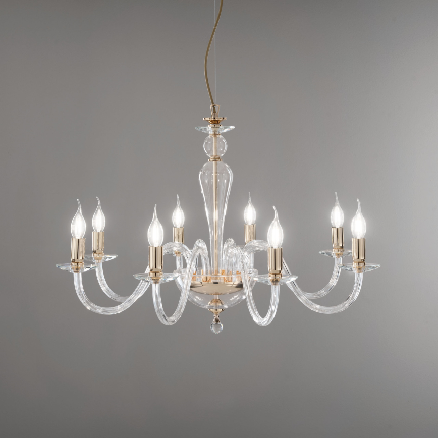 Ondaluce - Lampadario sospeso PAGANINI 6xE14/10W/230V Ø 70 cm oro/trasparente