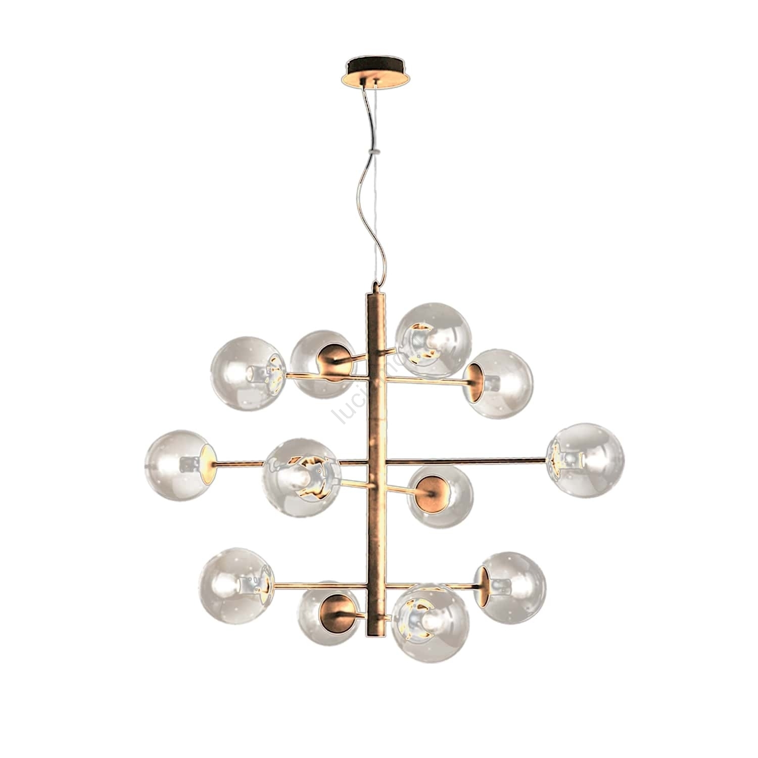 Ondaluce - Lampadario su cavo ELISEO 12xE14/10W/230V oro/beige fumé