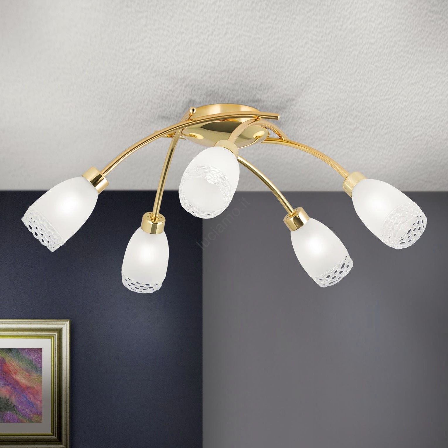 Lampadario a plafone CARLA 5xG9/28W/230V dorato caratterizza un design gradevole e funzionale. Per la lampada è adatta una lampadina con attacco G9. Qui puoi acquistare altre lampadine a prezzi vantaggiosi. Avrai un'aggiunta interessante alla tua casa.