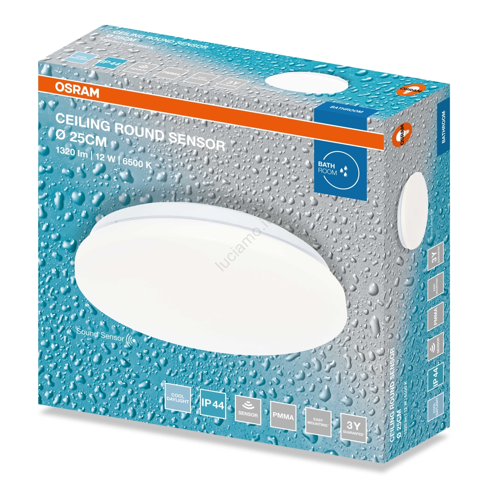 • Osram - Plafoniera LED per bagno con sensore crepuscolare, rotonda, 12W/230V, 4000K, Ø 26 cm, IP44, bianca
