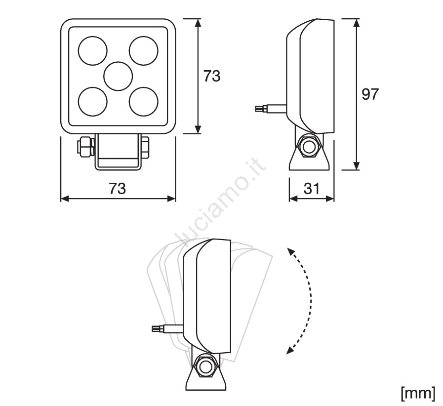 • Il proiettore è versatile nel suo impiego ed è un accessorio efficace per autocarri, macchine da cantiere, veicoli agricoli, veicoli commerciali e fuoristrada.