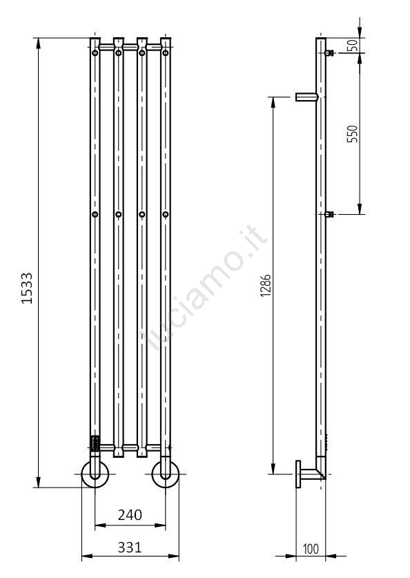 P.M.H. MO1SS-LK - Scaldasalviette elettrico MONA 93W/230V 153,3 cm IP44 acciaio inossidabile lucido