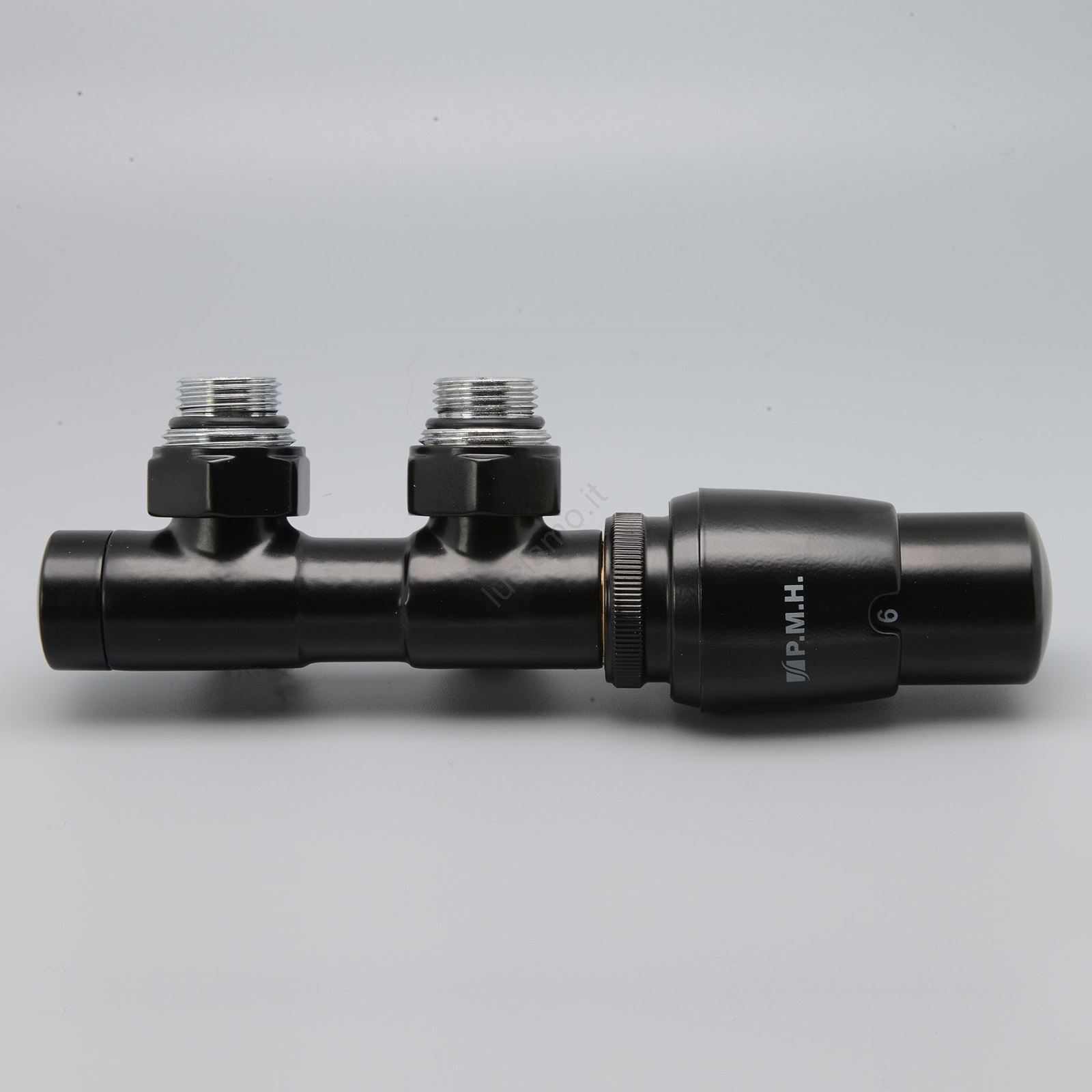 P.M.H. TERM-RB-EK - Valvola radiatore destra con testa termostatica TERM / nera