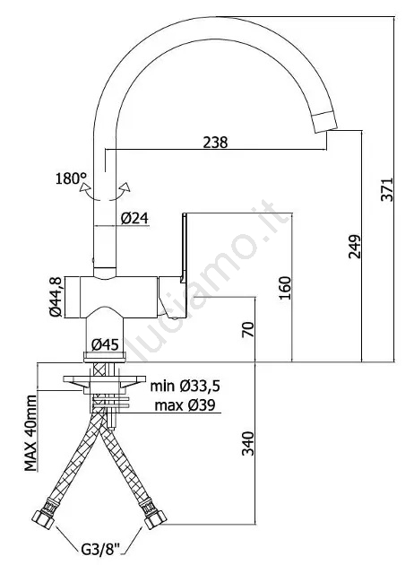 • Installazione semplice: inclusi nella confezione 2× tubi flessibili di collegamento in acciaio inox, lunghezza 40 cm.