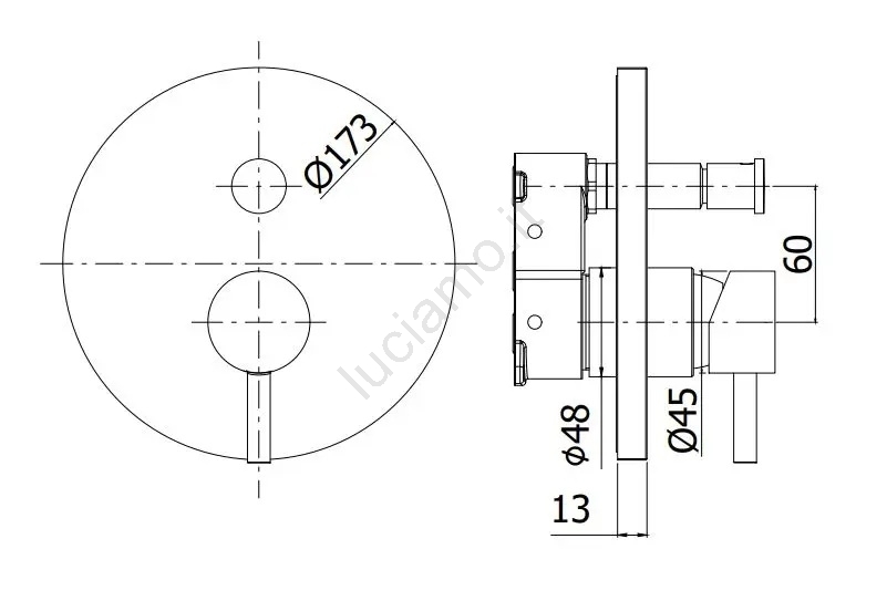 • Miscelatore doccia da incasso con deviatore per commutare l'uscita.