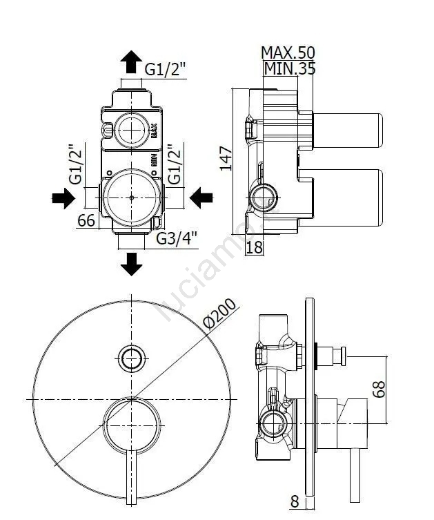 • Il miscelatore include il corpo incassato per il montaggio.