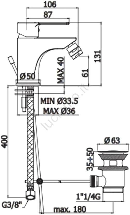 • Miscelatore monocomando per bidet della serie Paffoni RED.