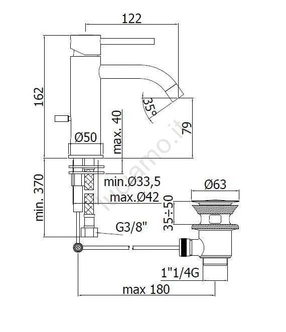 • Rubinetto lavabo monocomando da appoggio con scarico.