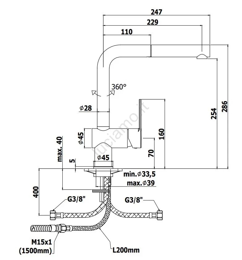 • Perfetto per l'installazione su lavello o piano di lavoro come miscelatore da appoggio.