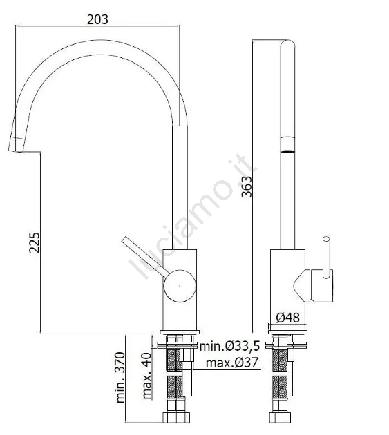 Paffoni - Miscelatore per lavello LIGHT 36,3 cm cromo lucido