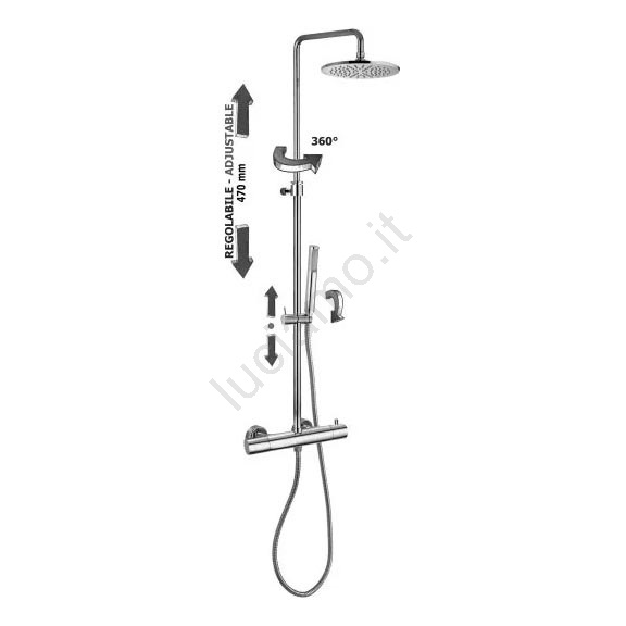 • Set doccia da parete con miscelatore termostatico per una temperatura dell'acqua costante.