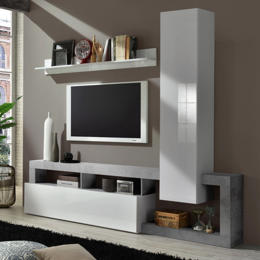 Parete attrezzata LENOR bianco/grigio effetto cemento