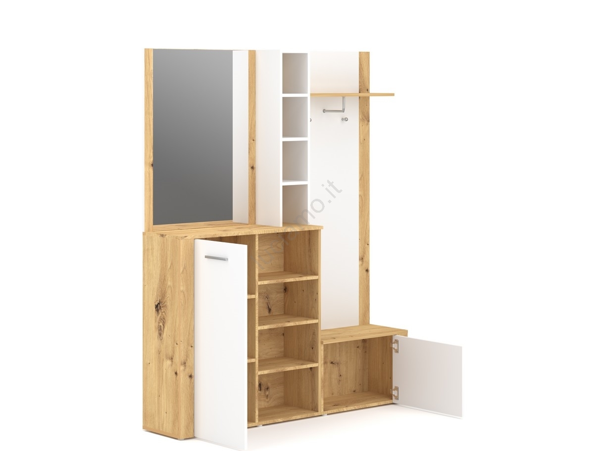 • Ripiani aperti, ganci, asta per cappotti e uno specchio di grandi dimensioni offrono esattamente ciò di cui hai bisogno.