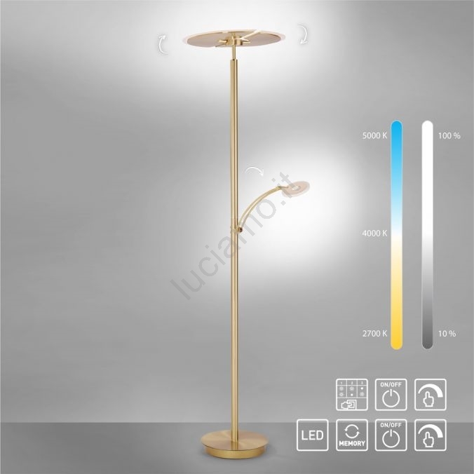 • Paul Neuhaus 673-60 - Lampada da terra dimmerabile a LED ARTUR 2xLED/21W/230V+LED/6W dorata
