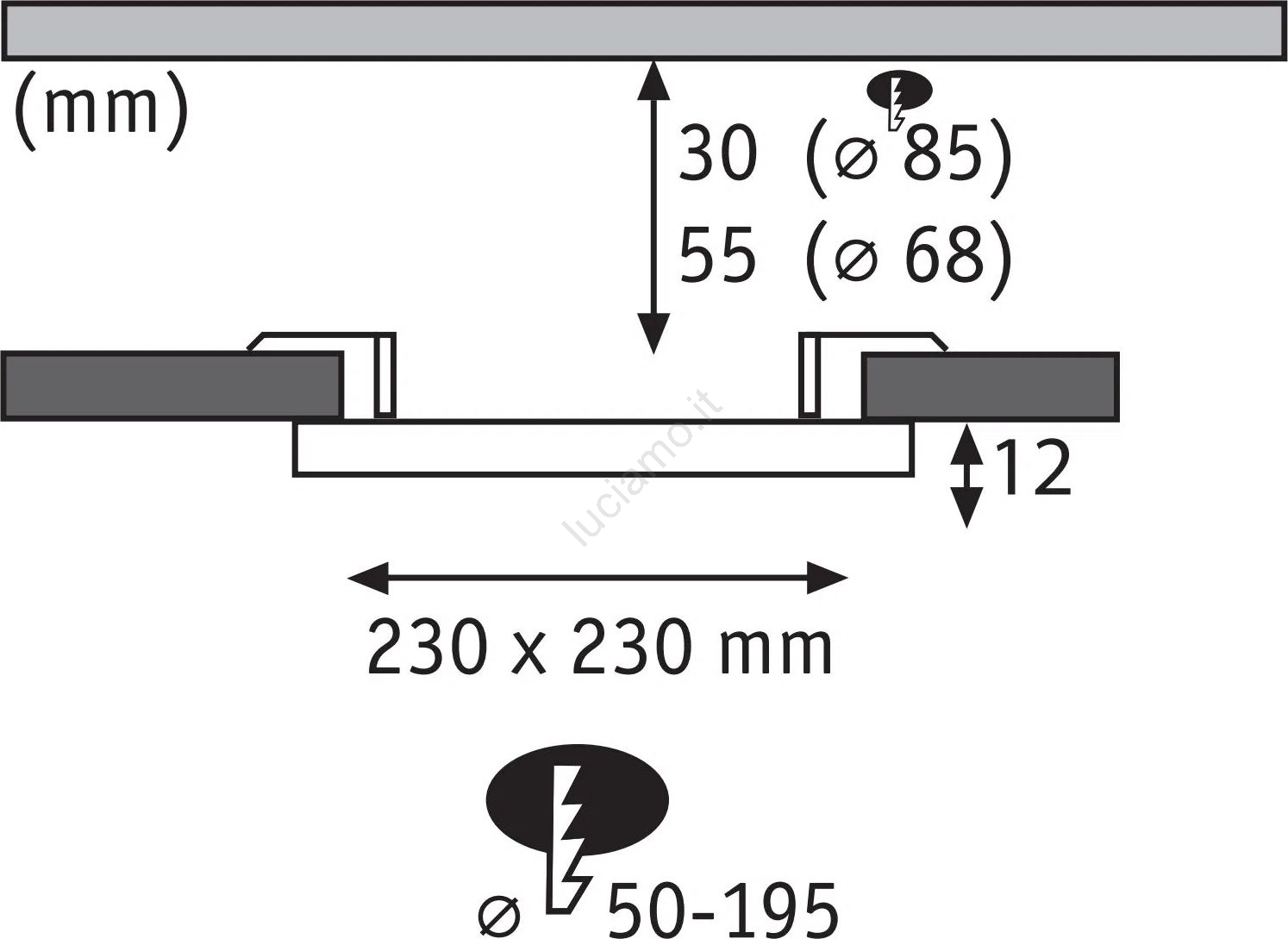 Paulmann 79967 - Faretto ad incasso dimmerabile per bagno AREO, LED 16W, IP44, 230V, 23x23 cm, nero