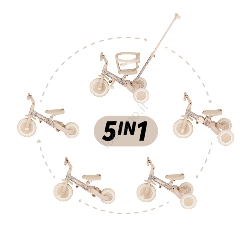 • Triciclo multifunzionale con 5 modalità in base all'età e alle capacità del bambino.