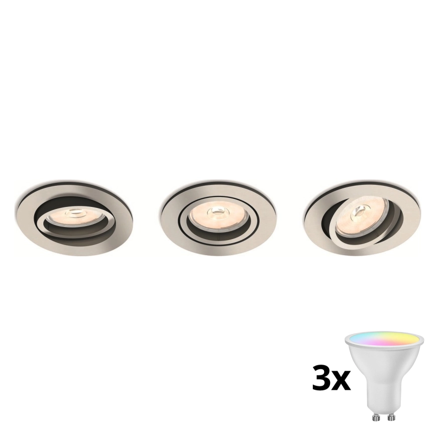 Philips - Set da 3 faretti LED RGBW dimmerabili da incasso 1x GU10/4,8W/230V, cromo opaco + telecomando