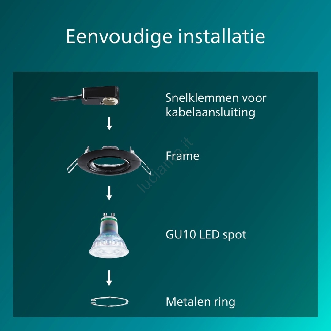 Philips - Lampada da incasso PERIDOT 1xGU10/7W/230V nera caratterizza un design gradevole e funzionale. Per la lampada è adatta una lampadina con attacco GU10. Qui puoi acquistare altre lampadine a prezzi vantaggiosi. Avrai un'aggiunta interessante alla tua casa.