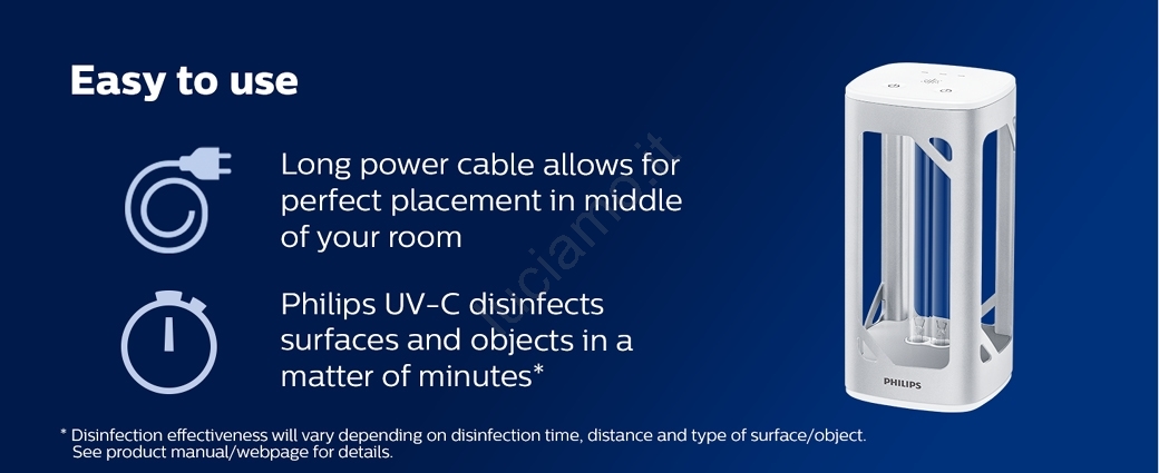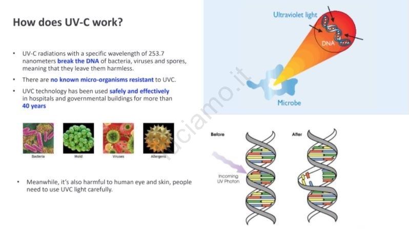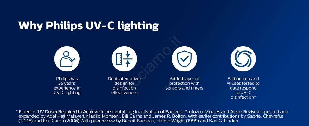 Questo prodotto contiene mercurio. Il prodotto emette radiazioni ultraviolette, che è pericolosa. Non è destinata all'illuminazione generale. Le radiazioni di questa sorgente luminosa sono pericolose e dannose per la pelle, le mucose e la vista. Per evitare danni alla salute (infortuni, ustioni, malattie) è necessario evitare l'esposizione diretta e indiretta alla luce. Le lampade germicide non devono irradiare direttamente gli spazi in cui si trovano persone, animali e piante. Dopo la sterilizzazione, si consiglia di ventilare per 20-30 minuti.