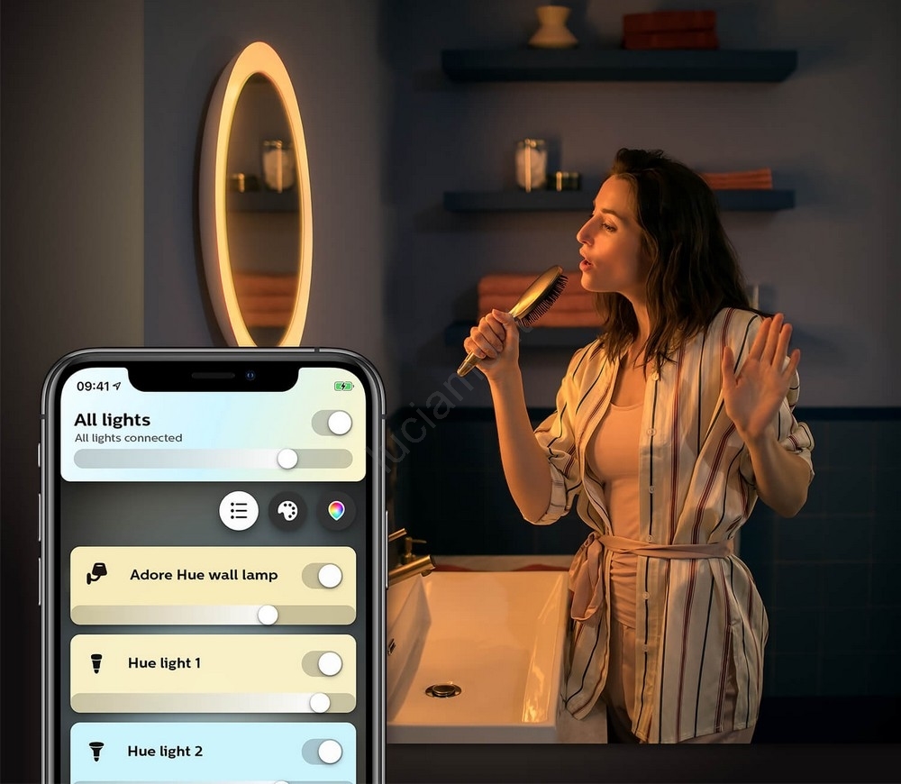 • L'illuminazione dello specchio può essere facilmente gestita tramite l'app mobile Philips Hue su smartphone o tablet.