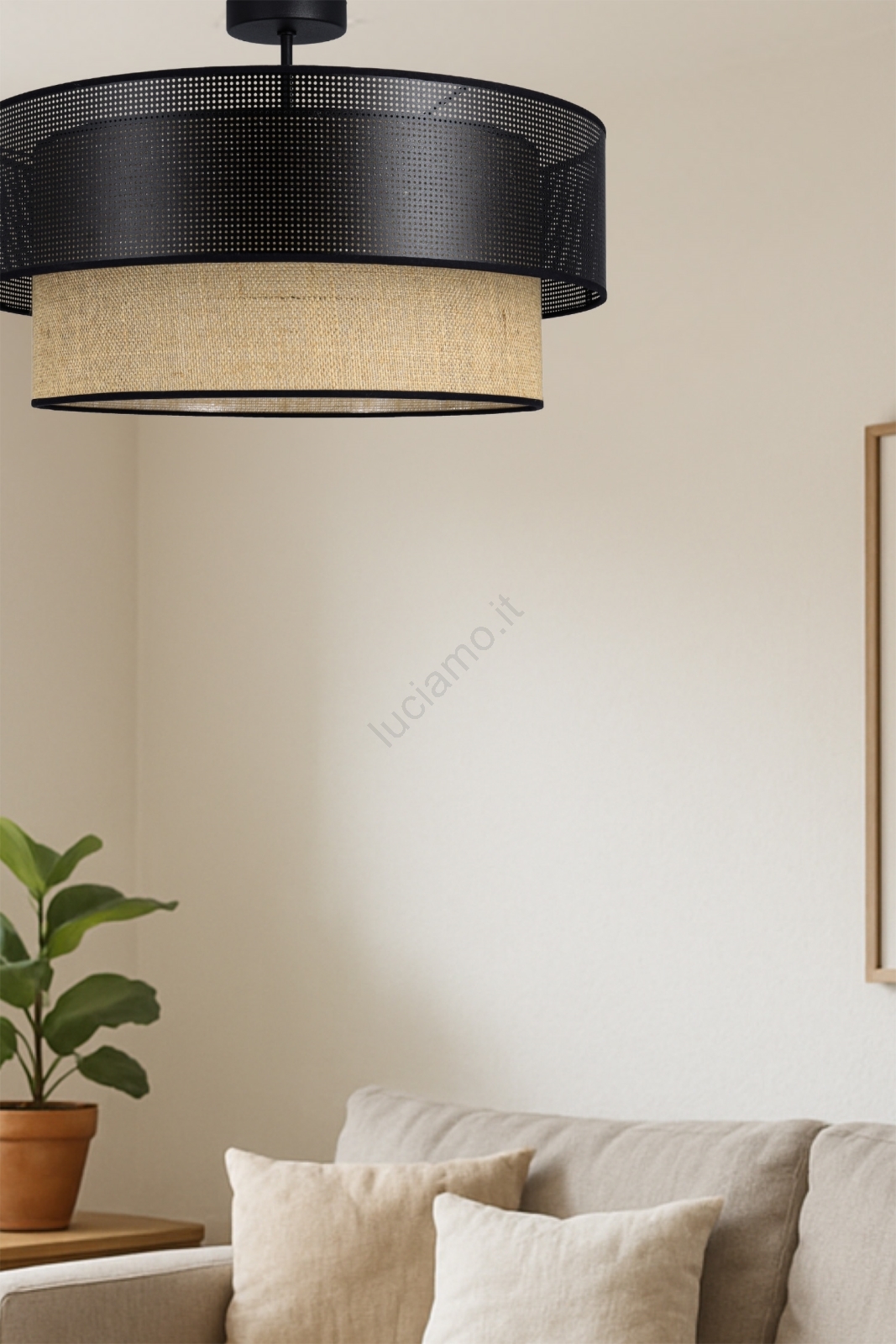Plafoniera BORHO 1xE27/60W/230V nero/iuta caratterizza un design gradevole e funzionale. Per la lampada è adatta una lampadina con attacco E27. Qui puoi acquistare altre lampadine a prezzi vantaggiosi. Avrai un'aggiunta interessante alla tua casa.