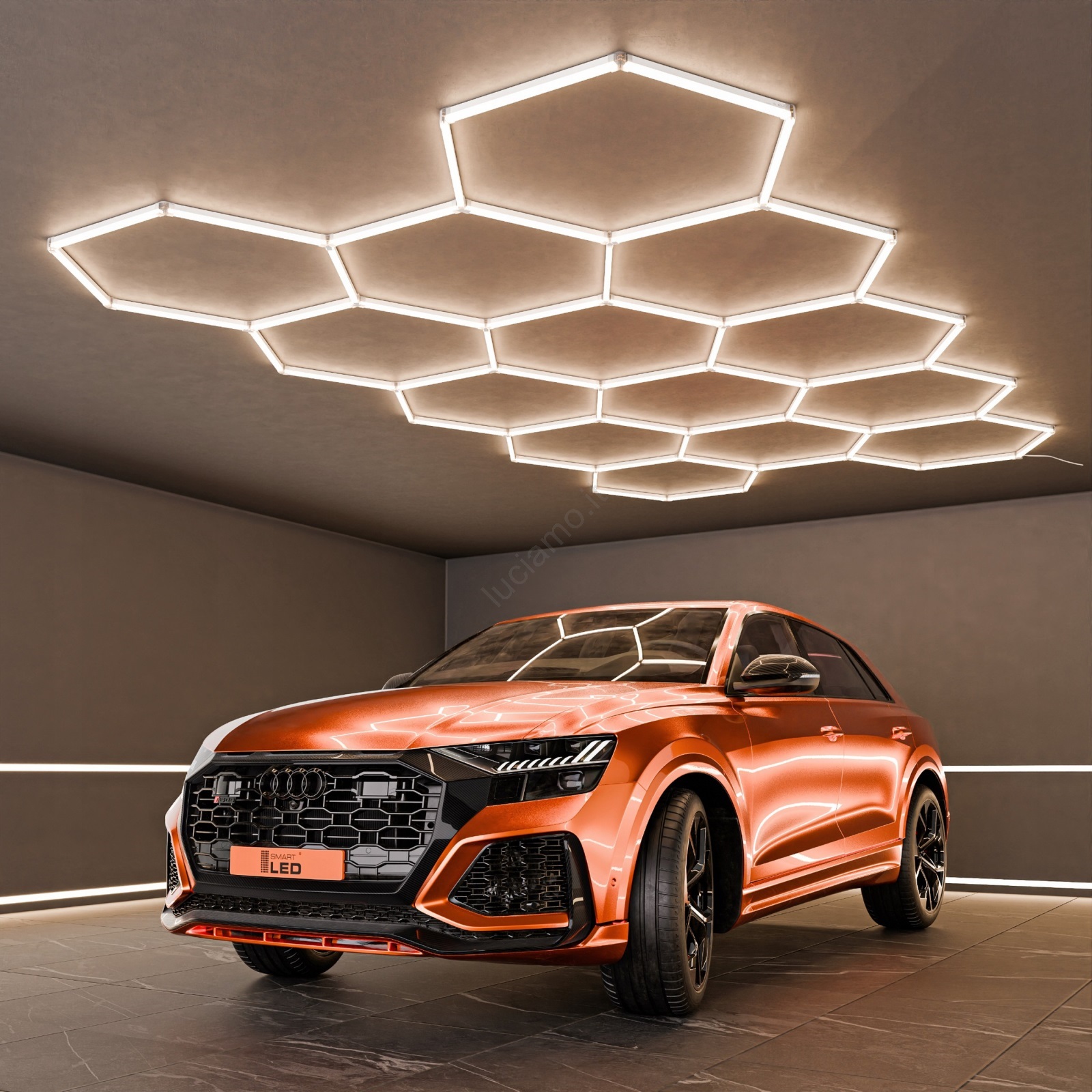 • Grazie alla struttura esagonale, l'illuminazione funge sia da elemento estetico sia da sistema luminoso funzionale.