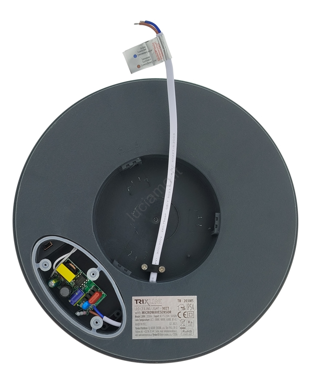 • Plafoniera LED per bagno con sensore di movimento, 20W/230V, 3000/4000/6500K, Ø 23 cm, IP54, antracite