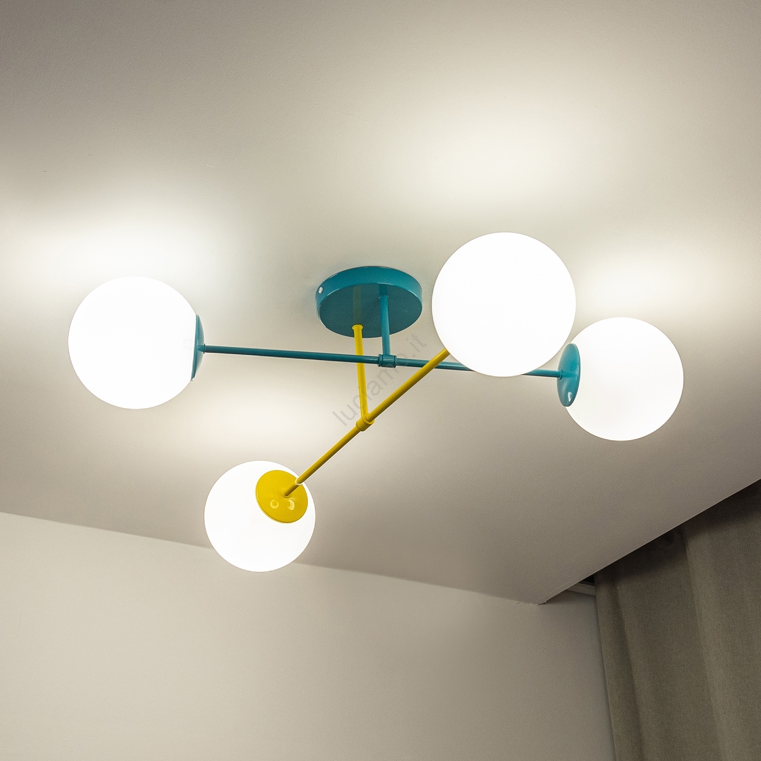 Plafoniera MOON 4xE27/15W/230V turchese/giallo