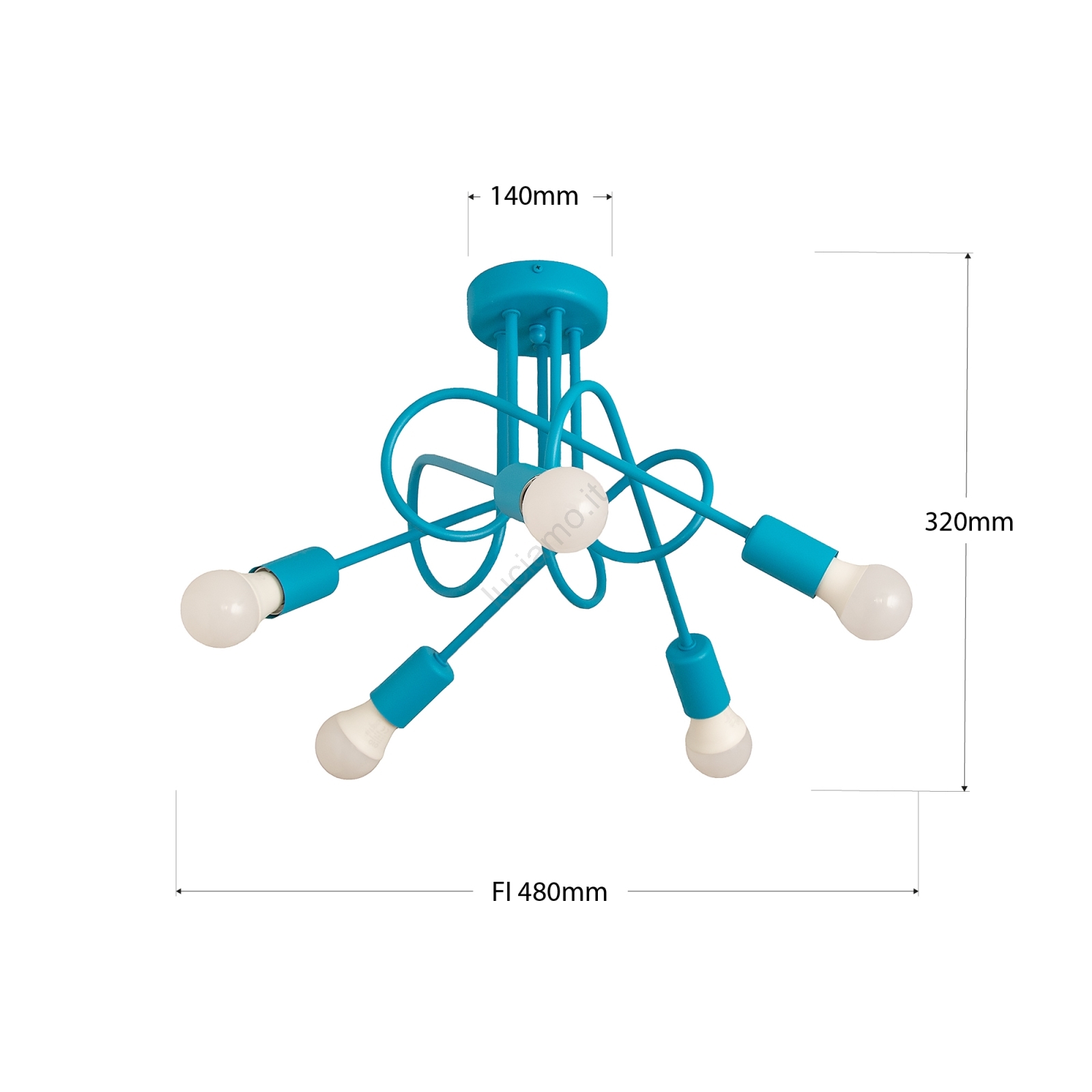 Lampadario a plafone per bambini OXFORD 5xE27/15W/230V blu caratterizza un design gradevole e funzionale. Per la lampada è adatta una lampadina con attacco E27. Qui puoi acquistare altre lampadine a prezzi vantaggiosi. Avrai un'aggiunta interessante alla tua casa.