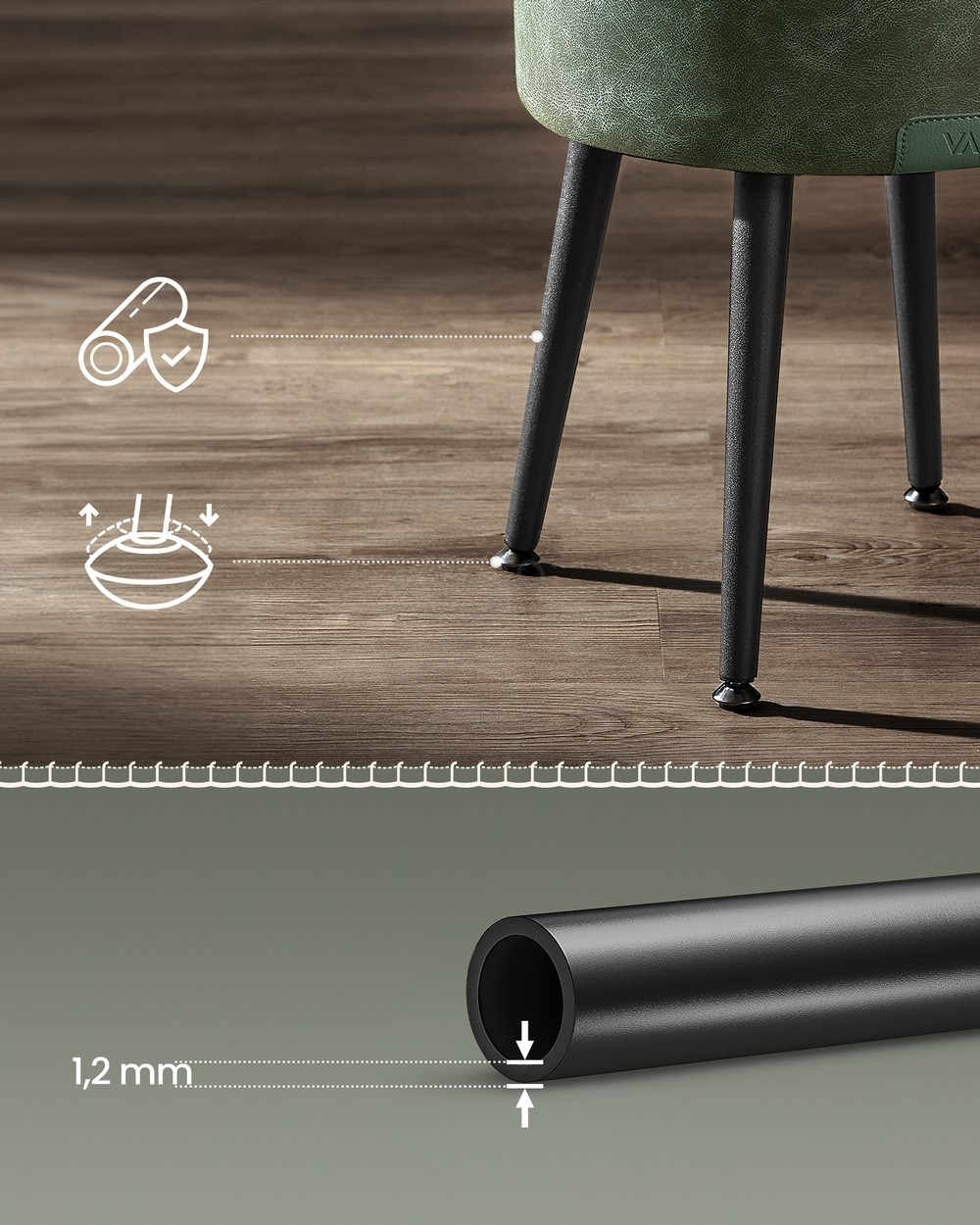 • Gambe eleganti in acciaio con piedini regolabili a snodo donano un aspetto moderno, supportano fino a 150 kg e garantiscono stabilità e lunga durata.