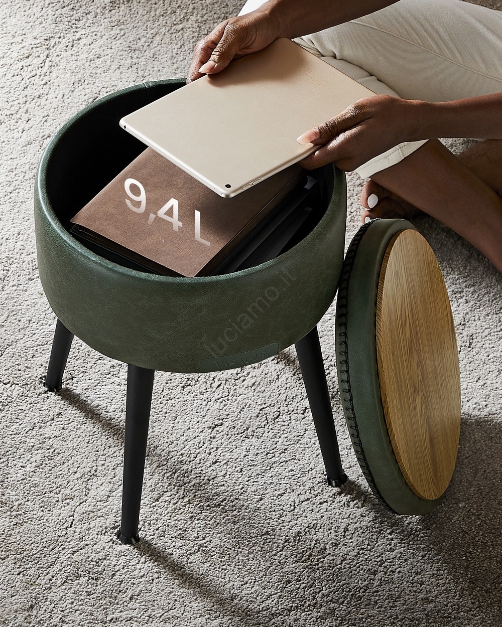 • All'interno del pouf c'è uno spazio (9,4 l) per riporre dispositivi elettronici, libri, coperte e altri piccoli oggetti.