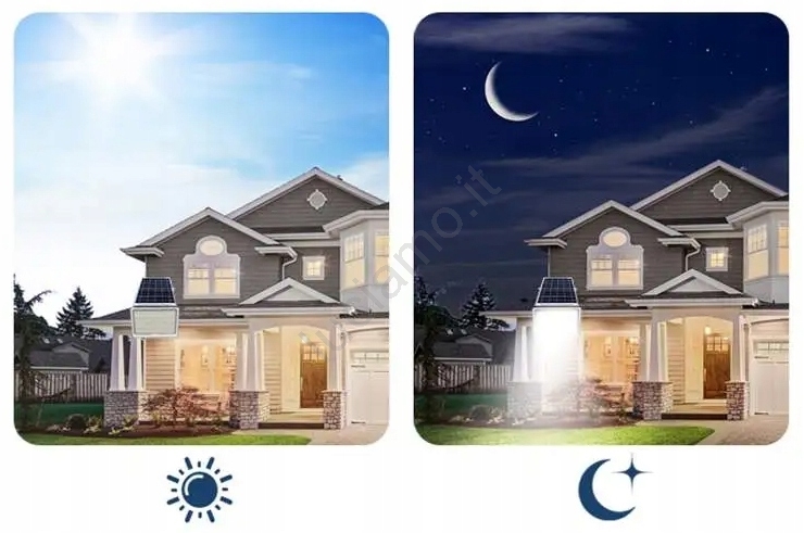 • Durante il giorno la batteria si ricarica con la luce solare tramite il pannello solare.