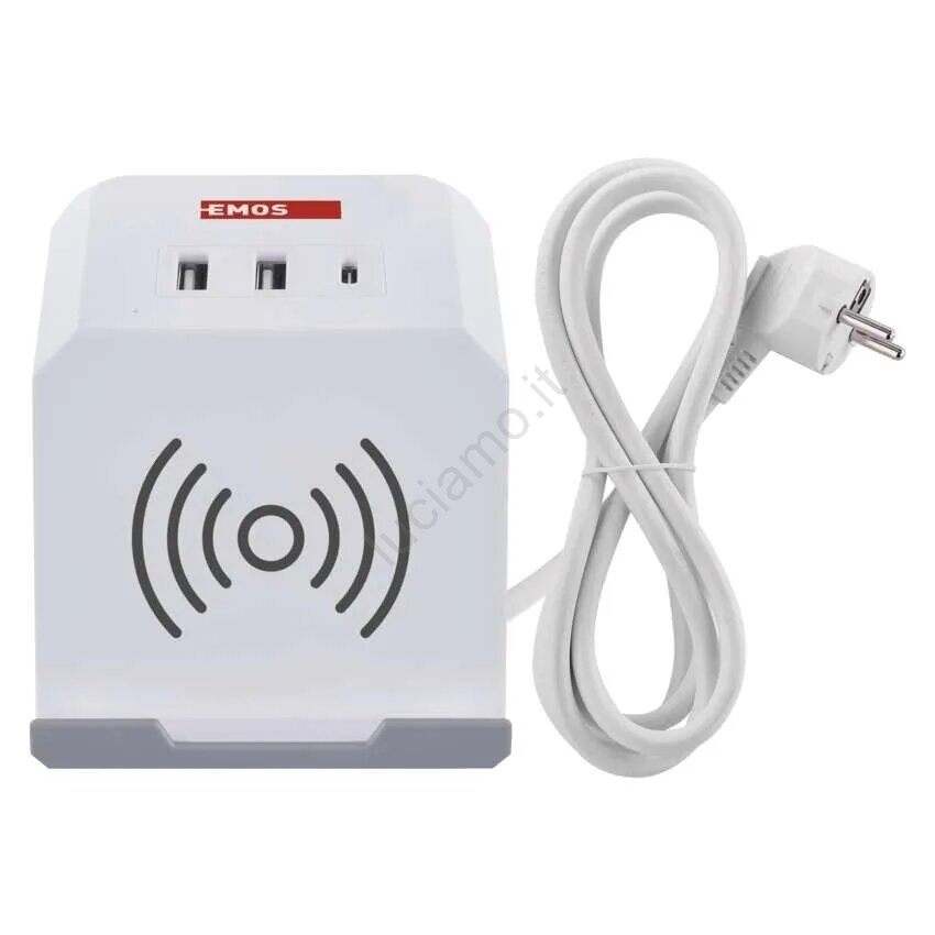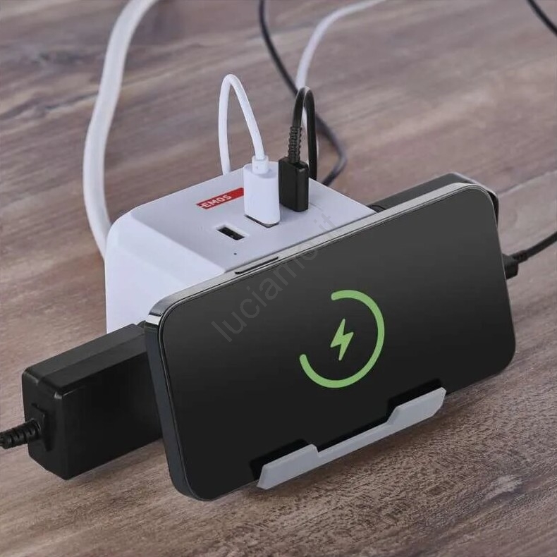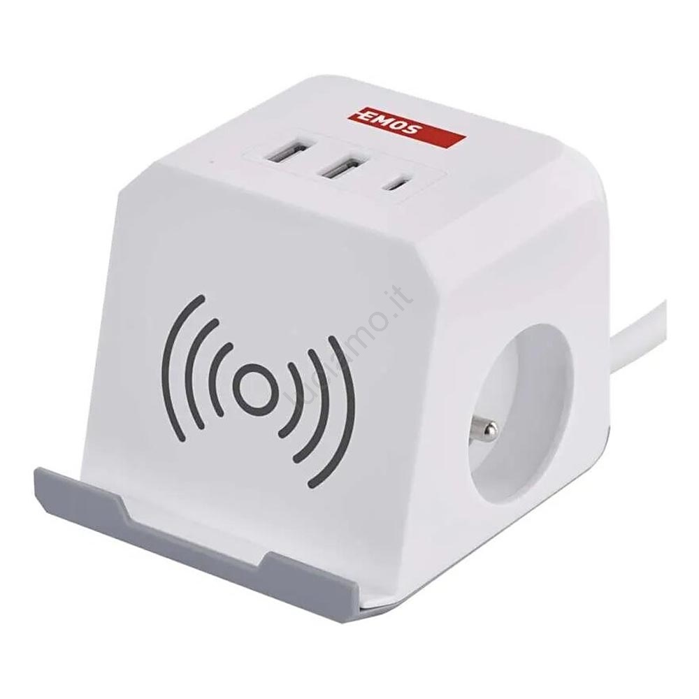 Cavo prolunga a cubo con ricarica wireless QI 2Z + 2x USB-A + 1x USB-C 2m bianco