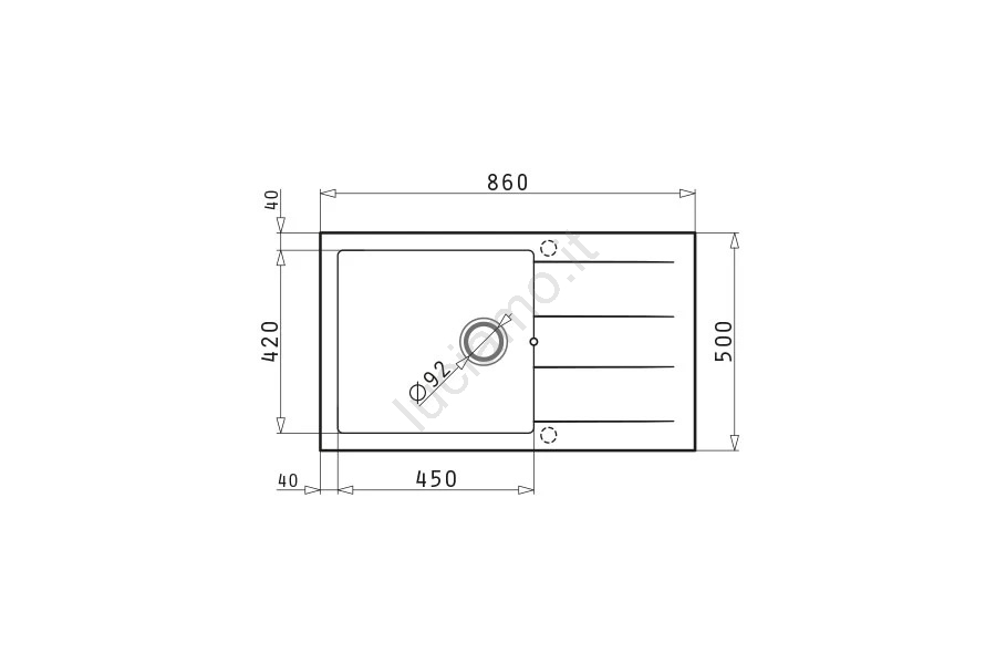 • Ampia vasca 45 x 42 x 20 cm.