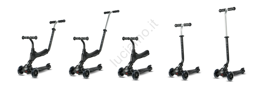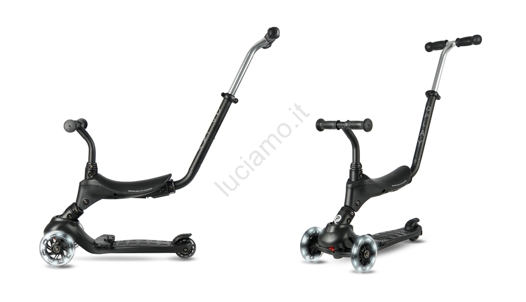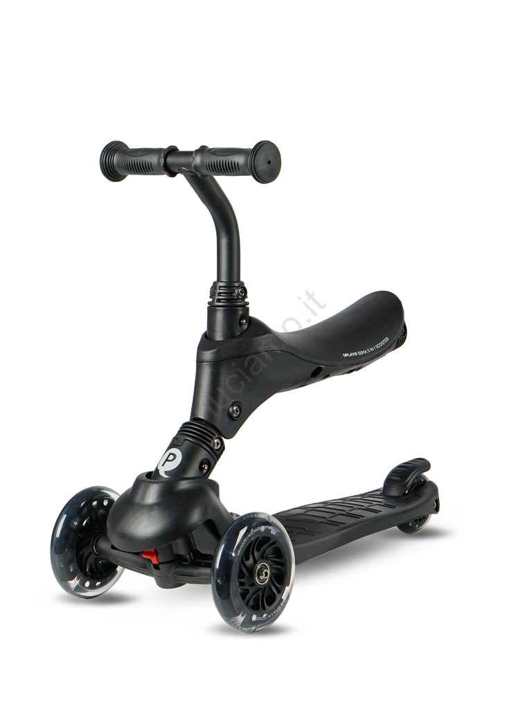 QPlay - Monopattino per bambini con ruote LED 5 in 1 SEMA PRO nero